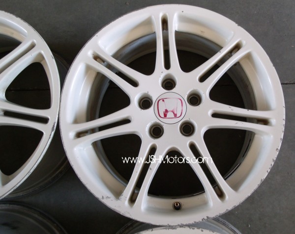 JDM Civic Ep3 Type R Wheels. One wheel needs repair, Some rash, etc as pictured. Center caps included, Championship white in color.
